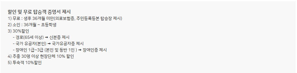 구분 편도 요금 왕복 요금